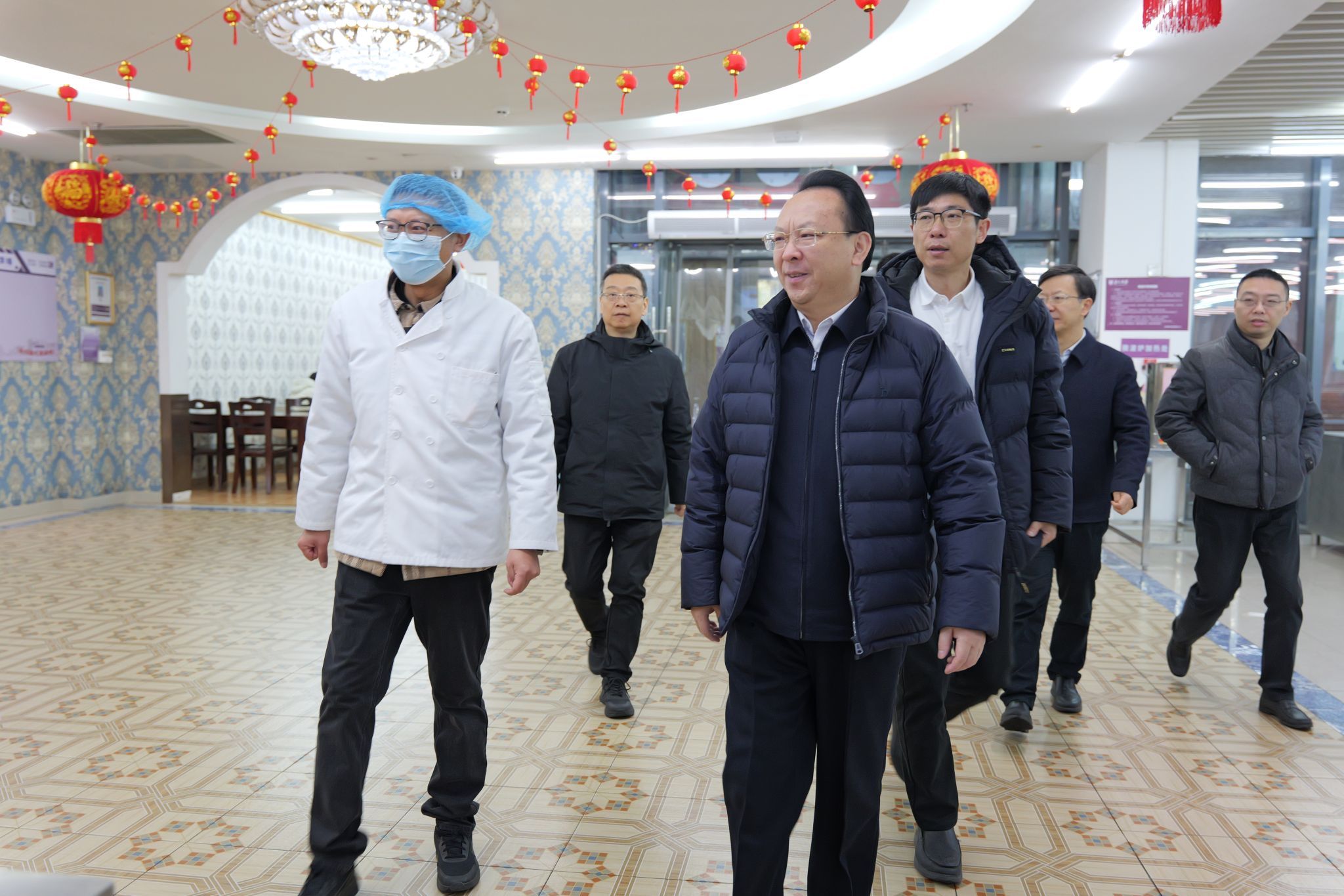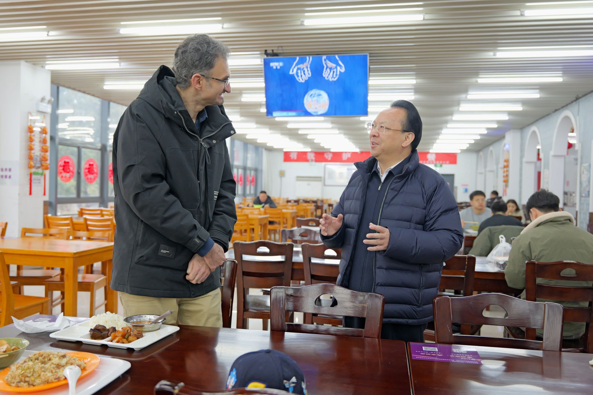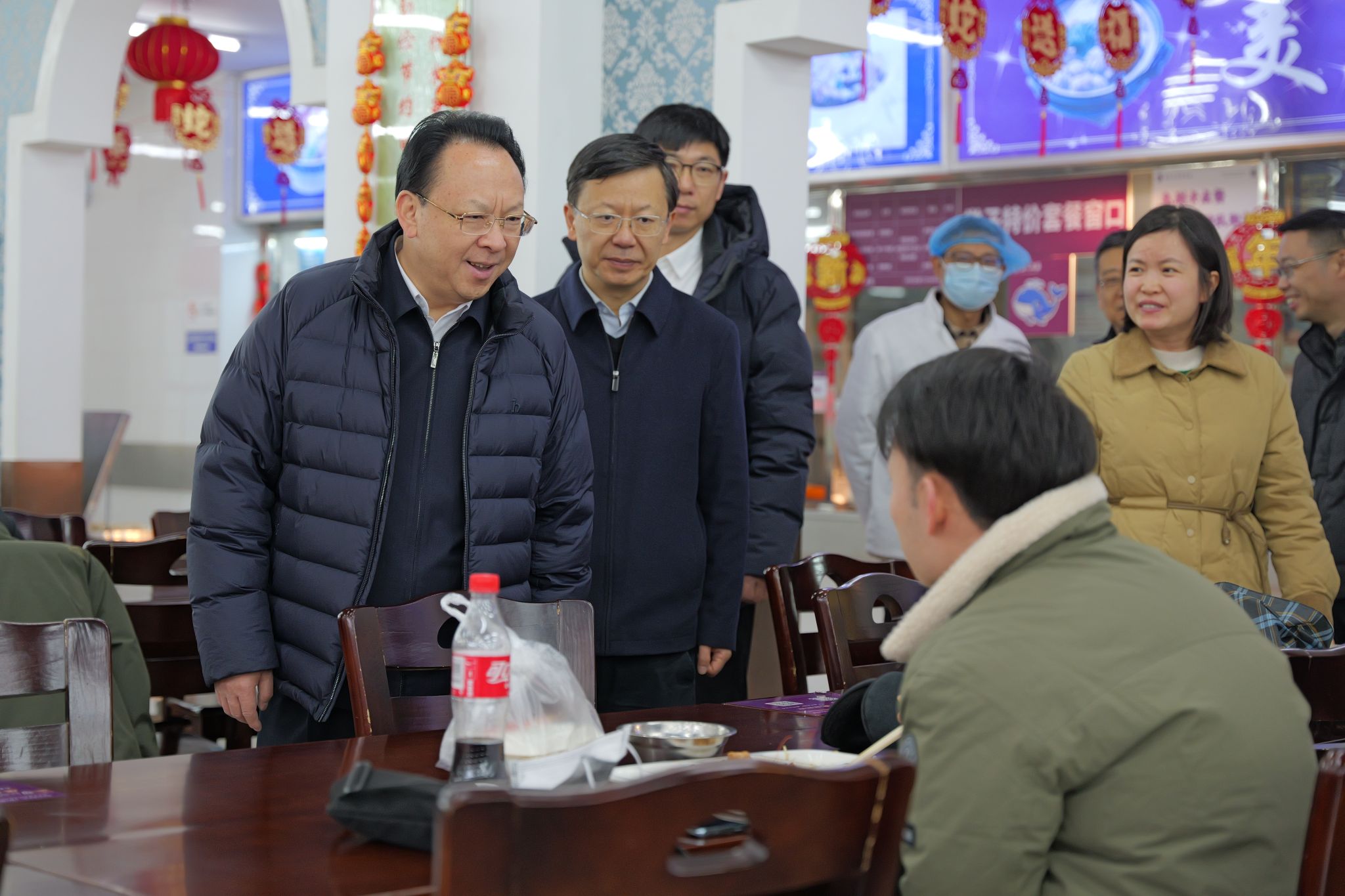 Lastly, he visited a canteen on campus and communicated with teachers and students to ask for their advice and suggestions. He asked the canteen to increase the supply of New Year's seasonal dishes during the Spring Festival, prepare New Year's Eve dinner, and carefully arrange New Year's Eve activities, so that teachers and students staying on campus can also experience a heartwarming Chinese New Year.