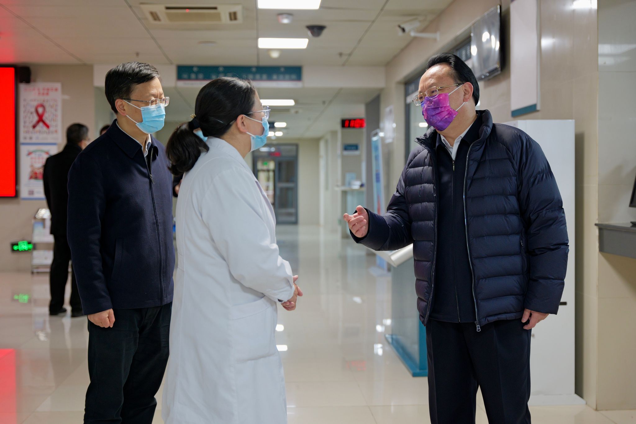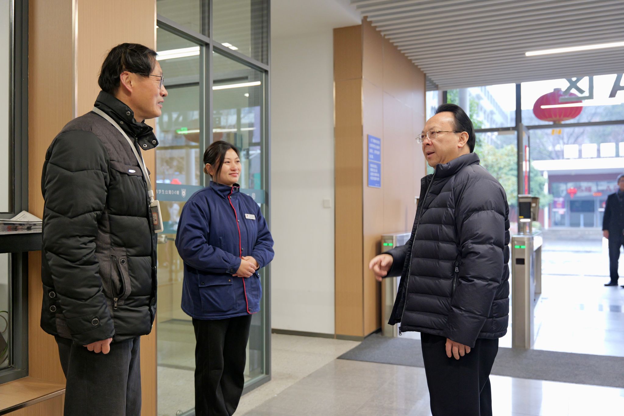 Then he visited different departments on campus including the University Hospital, the Security Office, to check out their work schedules during the winter break and expressed his gratitudes to the staff.