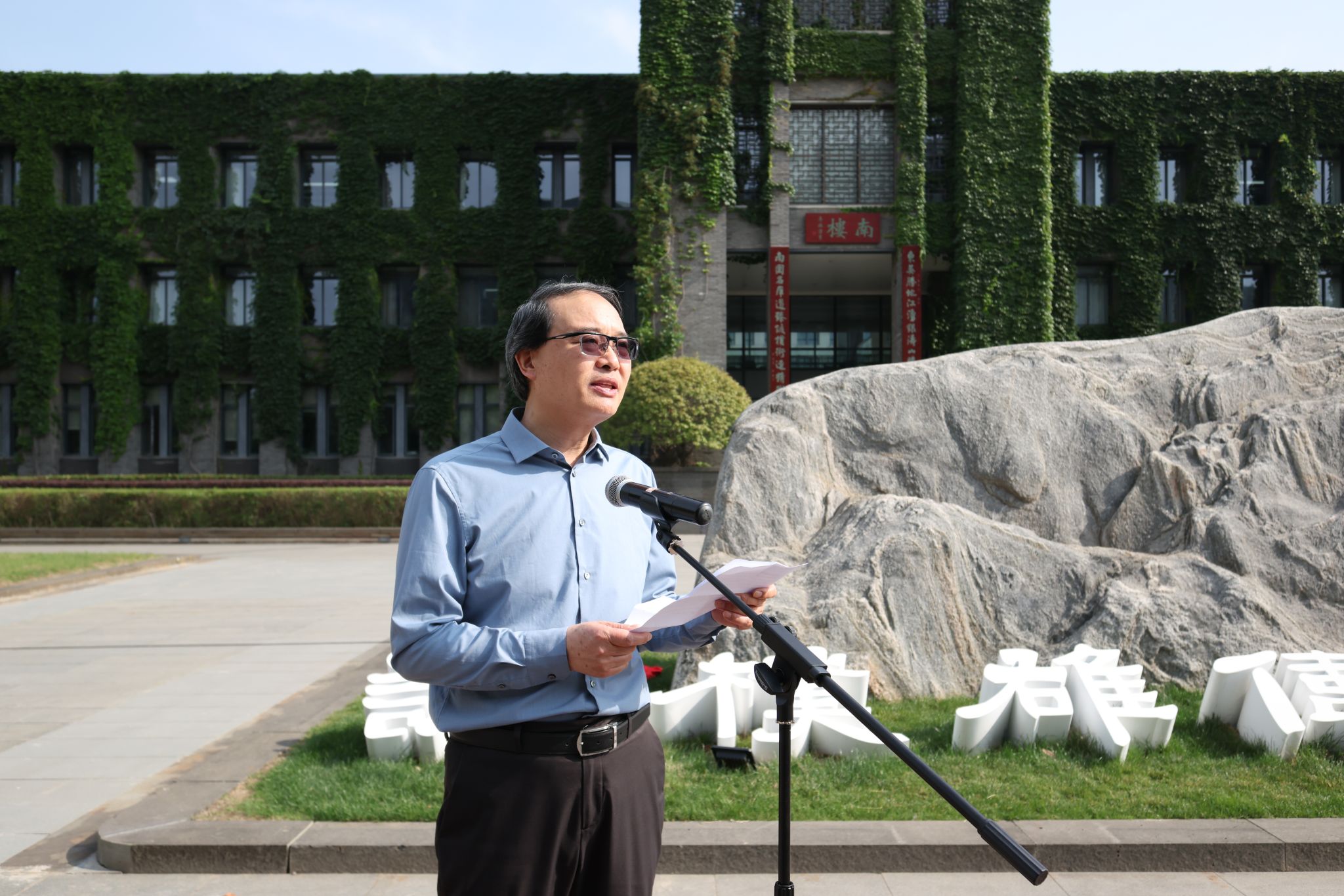Zhu Zhendong extended warm congratulations to the alma mater on her 123rd anniversary. He expressed his commitment to alumni work with even greater enthusiasm, selfless dedication, and persistent effort, aiming to establish the brand of NJU alumni work in Shanghai. He hopes that this motto stone, engraved with the character "Sincerity," will witness NJU alumni adhering to the principle of "Enduring hardships to achieve great things," and continue to write new chapters on the journey of building the "First Nanjing University."