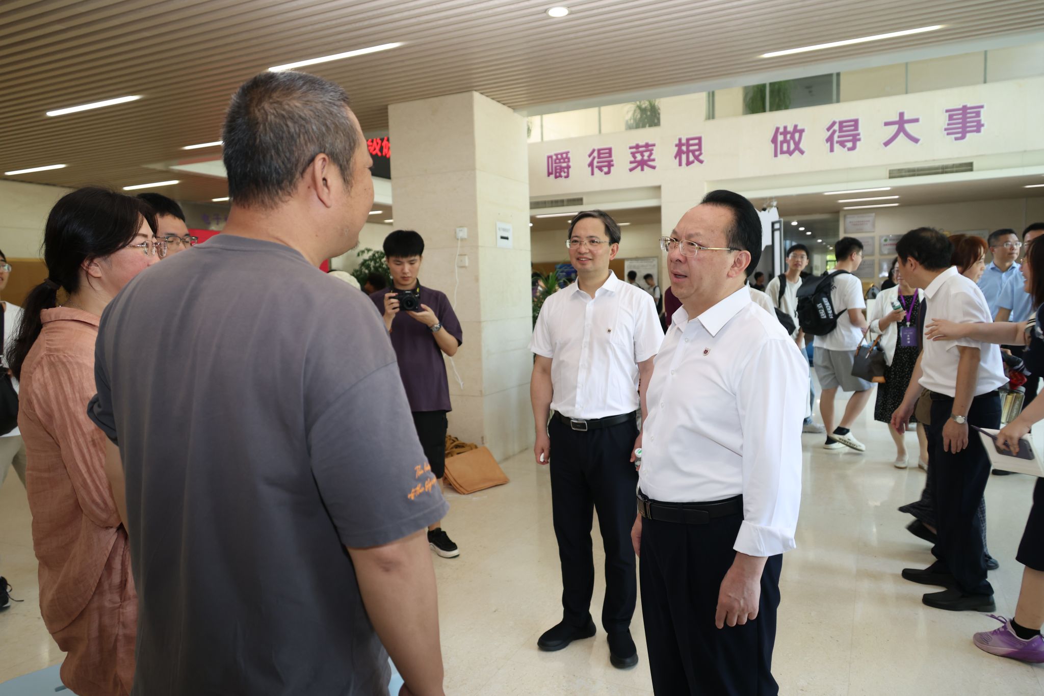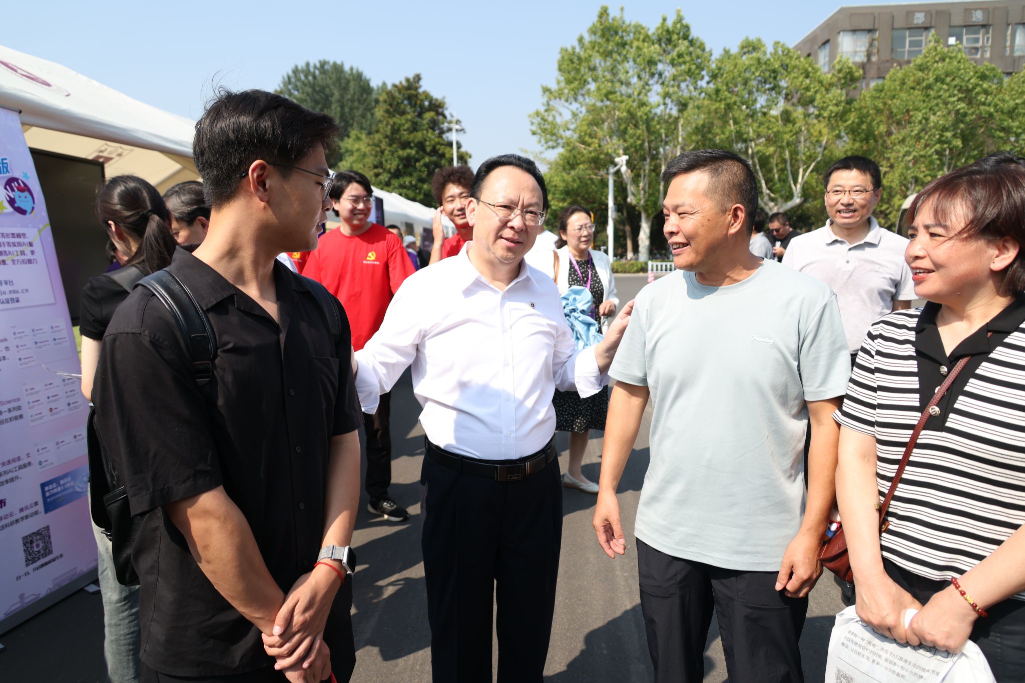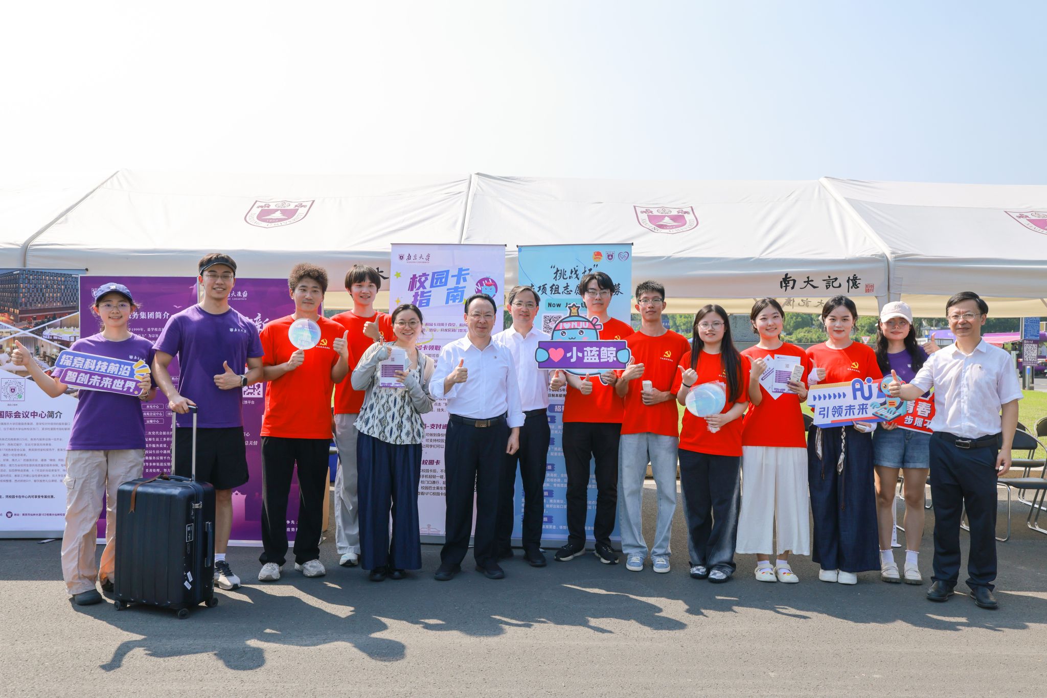 Zhou Zhihua visited Pukou Campus, meeting with faculty, staff, and volunteers busy on the front lines of welcoming new students, and warmly greeting new students and parents. He highly commended the volunteers for their dedicated service, learned in detail about the real-time registration of new students and shuttle bus operations, and listened to introductions about the distinctive welcoming activities of various colleges. Zhou Zhihua reminded the welcoming staff to be mindful of heat prevention while on duty and encouraged new students to cherish their time and study diligently. He also inspected the cafeteria operations, emphasizing the importance of ensuring campus safety and service quality to create a safe and comfortable learning and living environment for students.