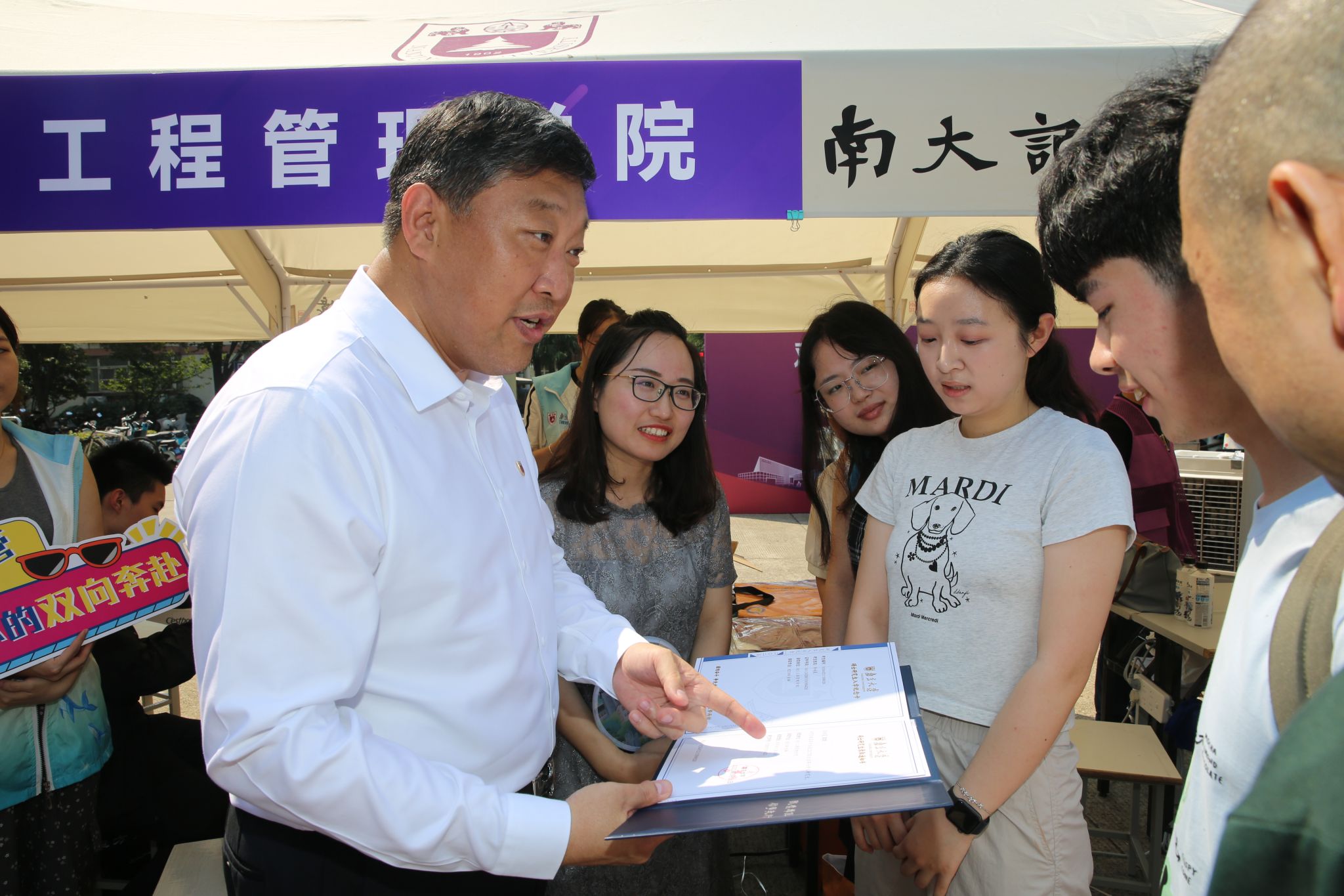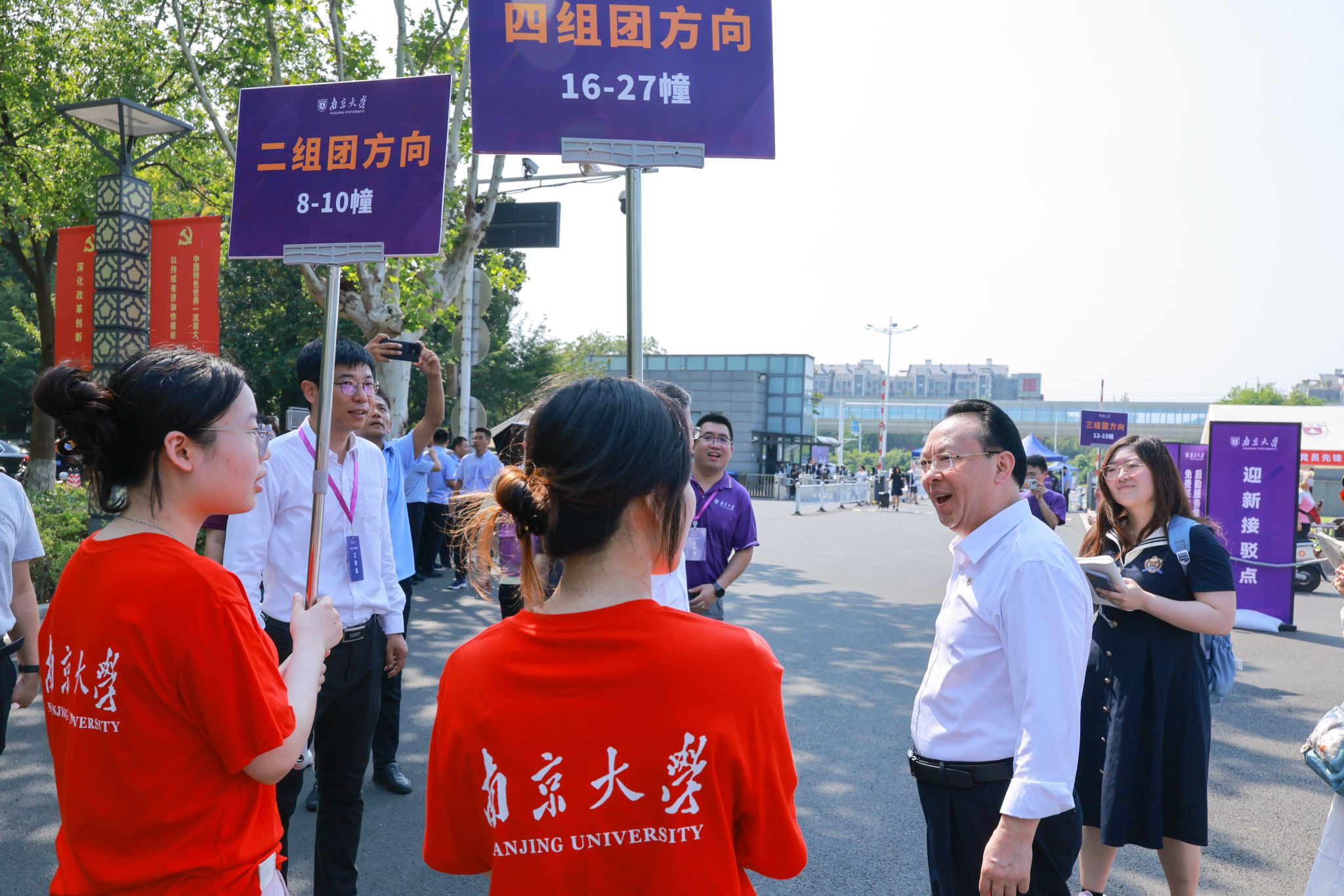 Tan Tieniu, Chair of NJU CPC Council and Academician of the Chinese Academy of Sciences visited the reception stations, college registration points, and student dormitories at the Xianlin Campus to meet new students and their parents, and to inspect the welcoming work on site.