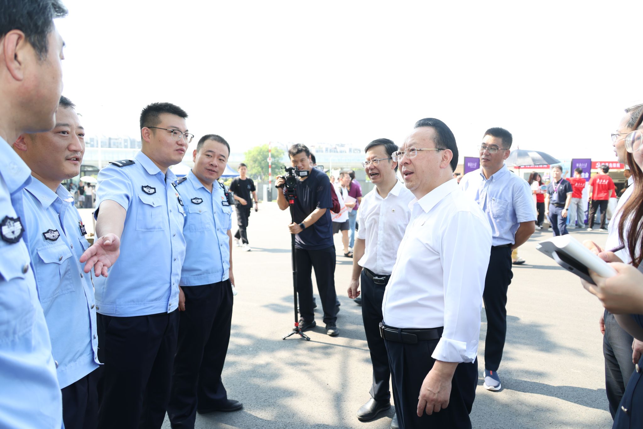 Police officers from Qixia Public Security Branch were stationed at the reception site to safeguard the welcoming activities. Tan Tieniu sincerely thanked them for their important contributions to creating a safe, stable, secure, and peaceful campus environment. He pointed out that with the large flow of people during the school opening season, it is important to both guard the campus gates and better showcase the university's image and culture.