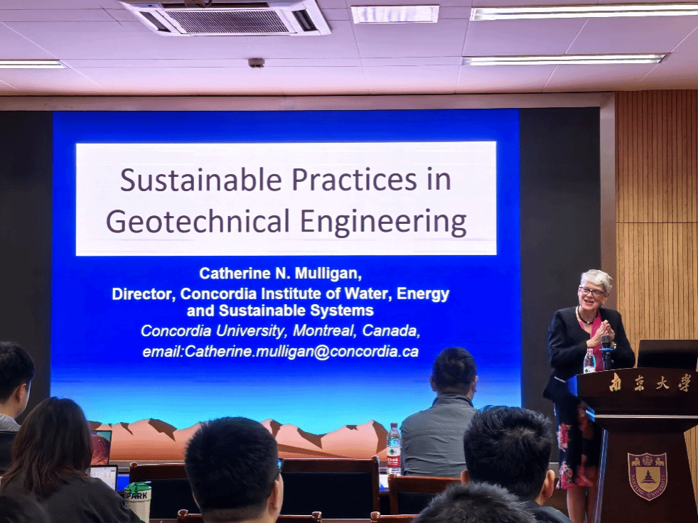 From October 9 to 14, 2024, Professor Catherine Mulligan, Fellow of the Royal Society of Canada, the Canadian Academy of Engineering, the Engineering Institute of Canada (EIC) and the Canadian Society for Civil Engineering, visited Nanjing University. Invited by Professor Zhu Honghu, she engaged in extensive academic exchanges with faculty and students.