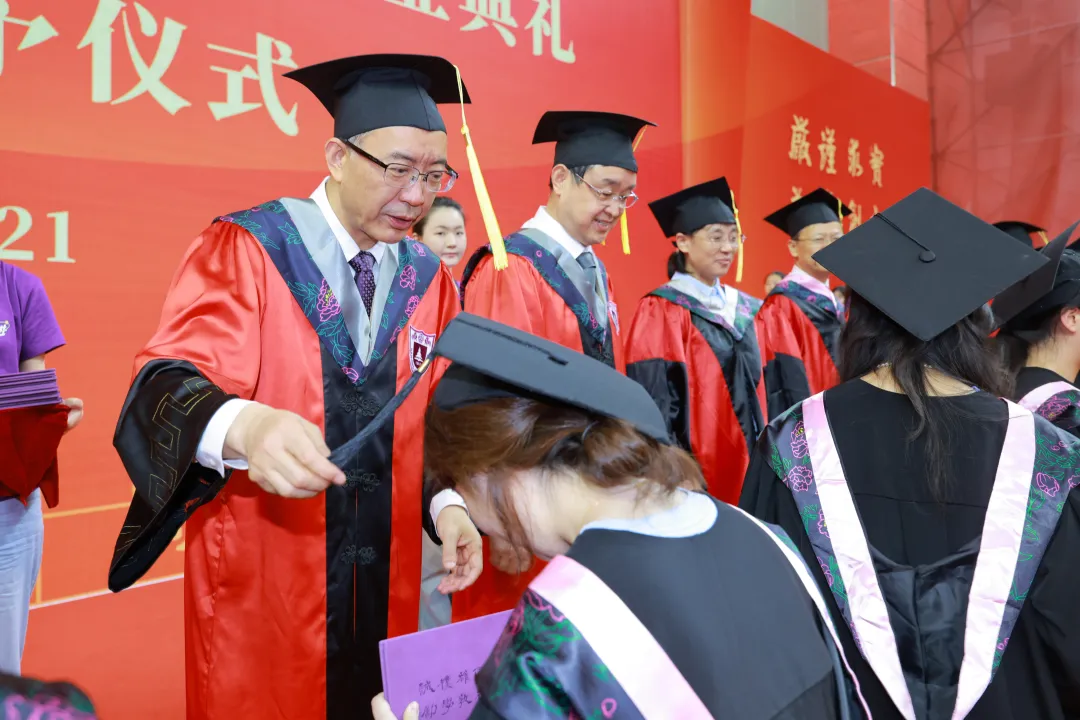 Subsequently, university leaders, Academicians of the CAS, members of the University Degree Evaluation Committee, college leaders, and College Degree Evaluation Committee members conferred degree certificates and adjusted tassels for bachelor's degree recipients.