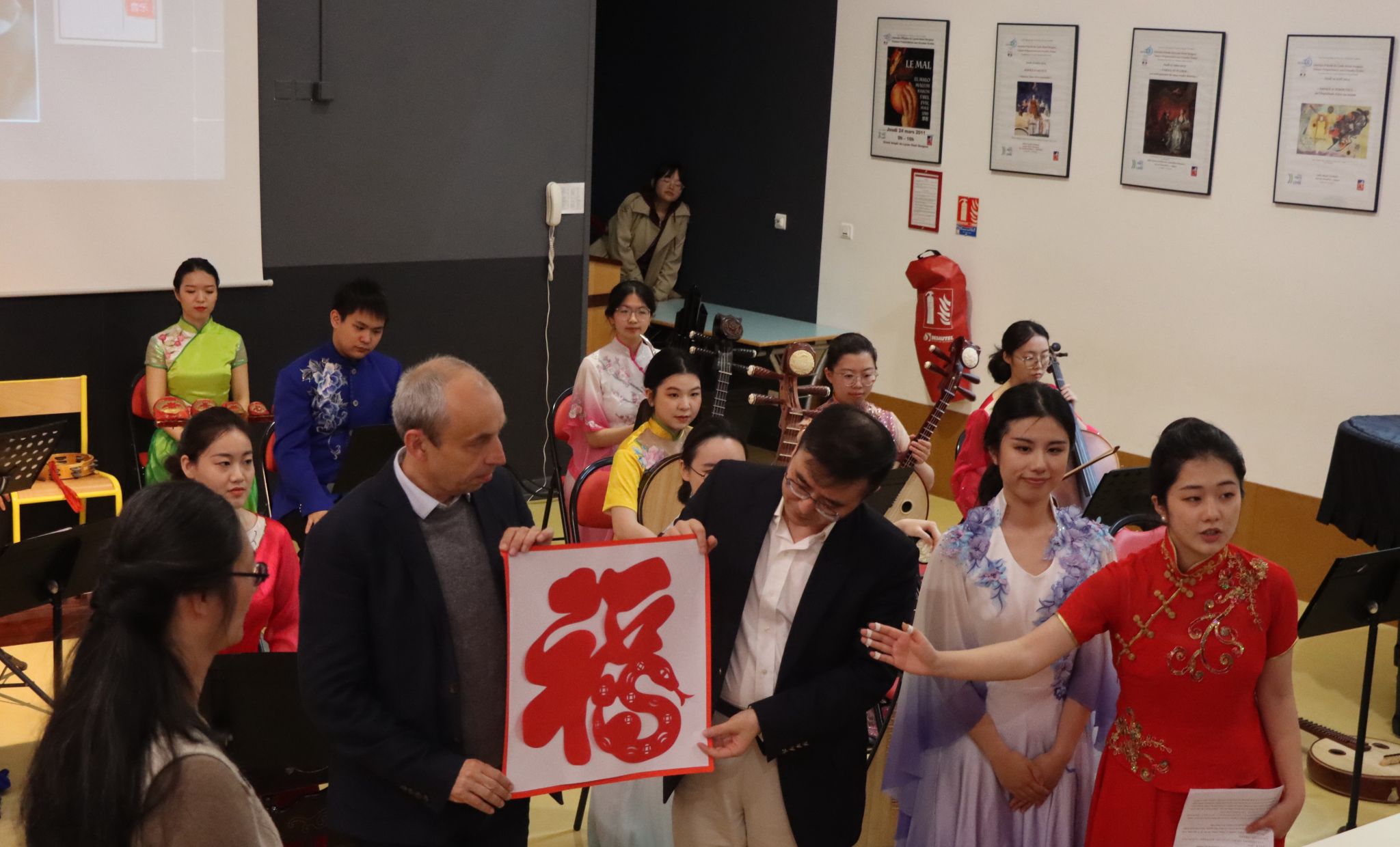 4月27日晚,巡演团返回法国,在卢浮宫朗斯分馆举行专场音乐会。本场演出是阿尔多瓦大学2025年度“中国艺术节”的压轴节目。阿尔多瓦大学与我校在共建孔子学院、开展学生交流等方面有着广泛密切的合作,高度重视乐团来访。阿尔多瓦大学历任5届校长悉数出席音乐会,与全场观众一起沉醉于中国传统民乐的魅力中。卢浮宫朗斯分馆外联与发展部主任雷金娜·布丽丝激动地表示,乐队演奏的《红楼梦》主题曲悲怆动人,让自己感动得落泪,生动诠释了“音乐无国界”的伟大文化意义。曾在凯发k8官网交换的阿尔多瓦大学学生温娜娜、玛果、魏治娜(中文名)对中国文化非常感兴趣,专程前来参加朗斯场音乐会,迷人动听的音律将她们拉回了在凯发k8官网的美好时光,她们期待继续做好中欧青年交流的文化使者。